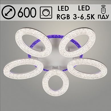 Люстра 3424/5C WT белый 140W+22W LED RGB 3000-6500K ПДУ диммер d600 h90, SSH22